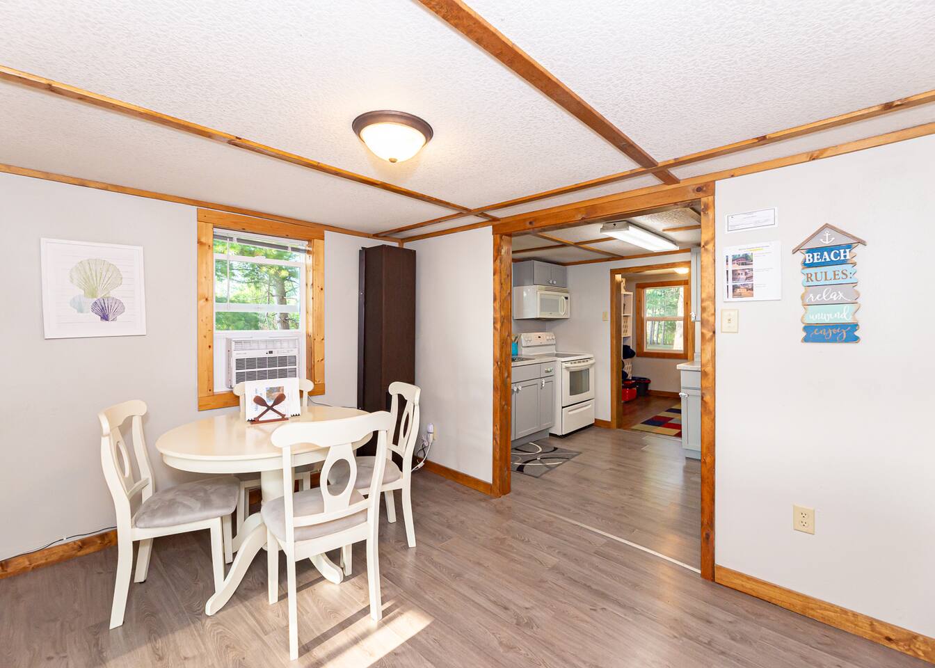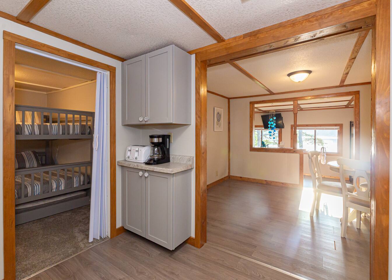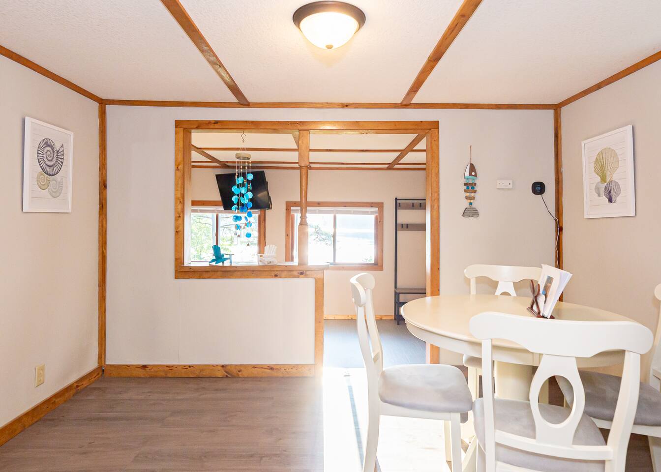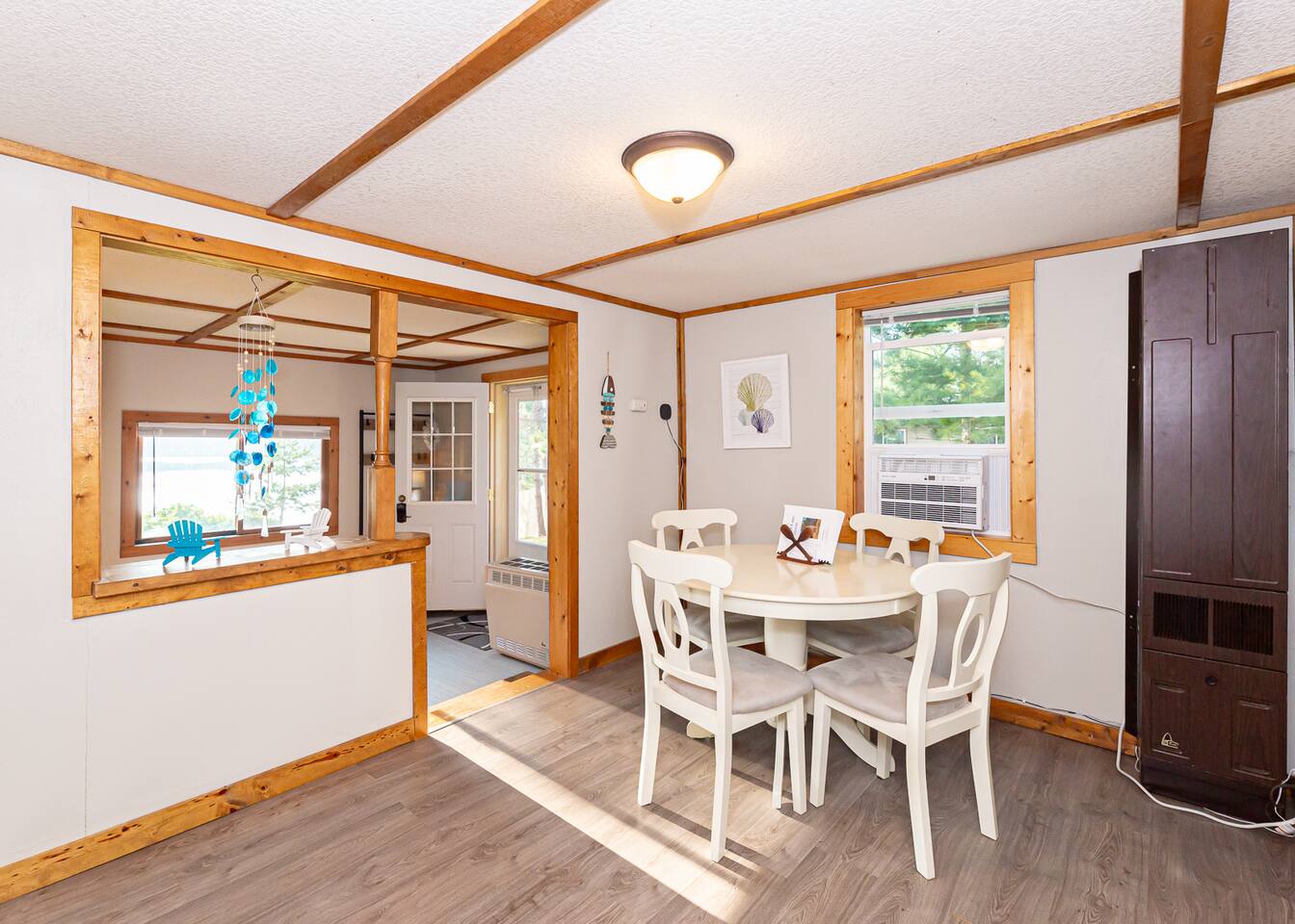 Quaint cabin with updates everywhere you turn. Features a lakeside family room with several windows to view the lake. Kitchen and dining area are open to each other with bedrooms off the sides of each. Plenty of room to spread out.