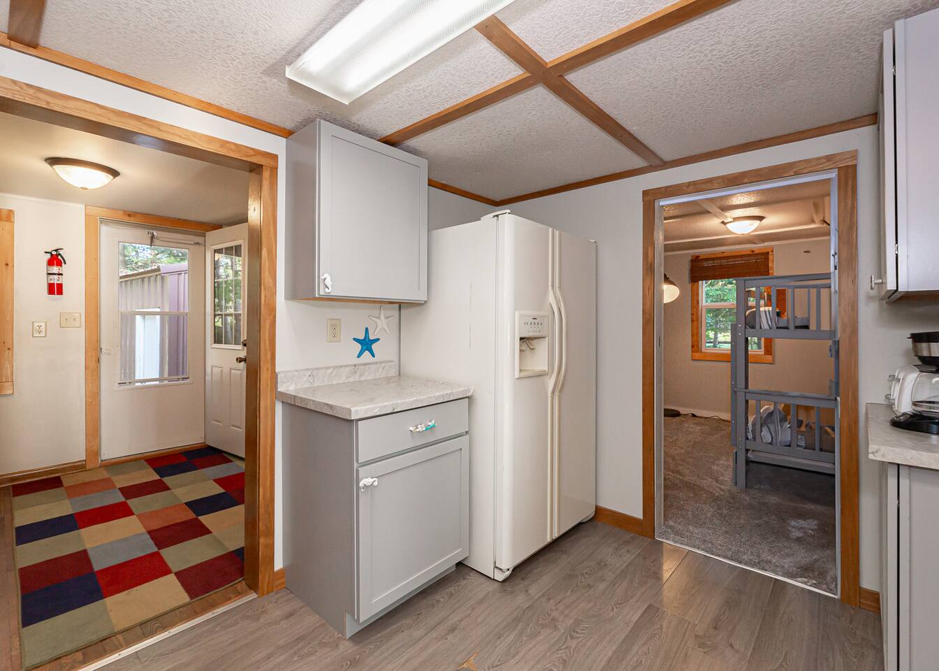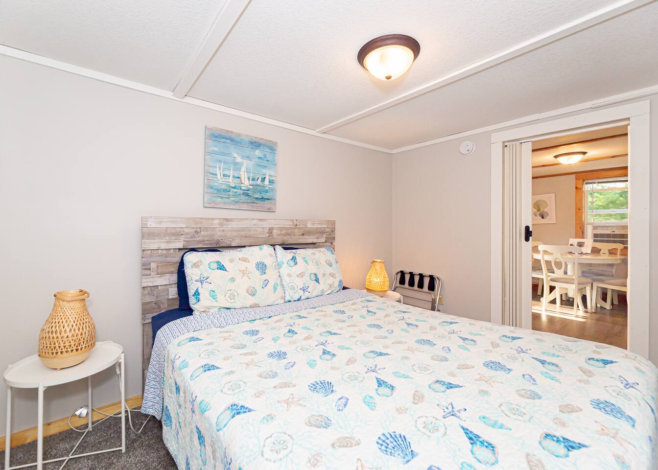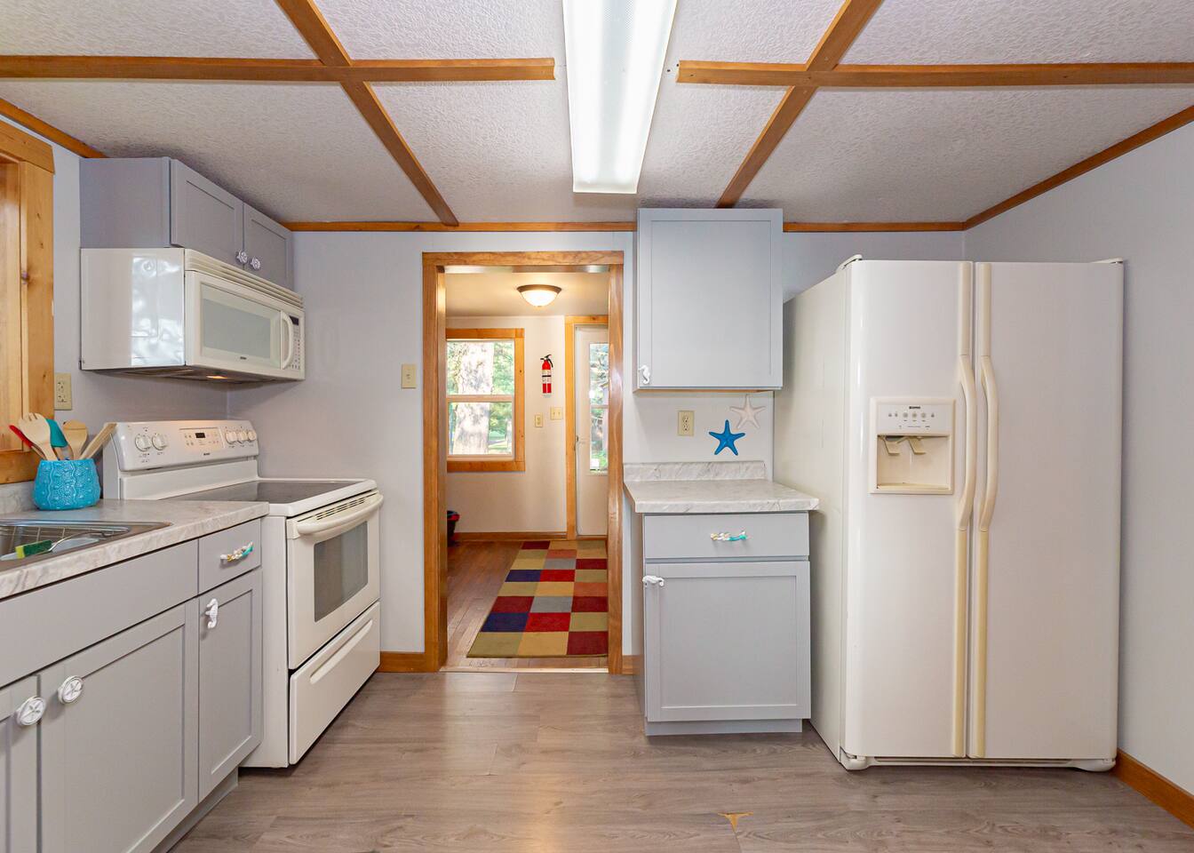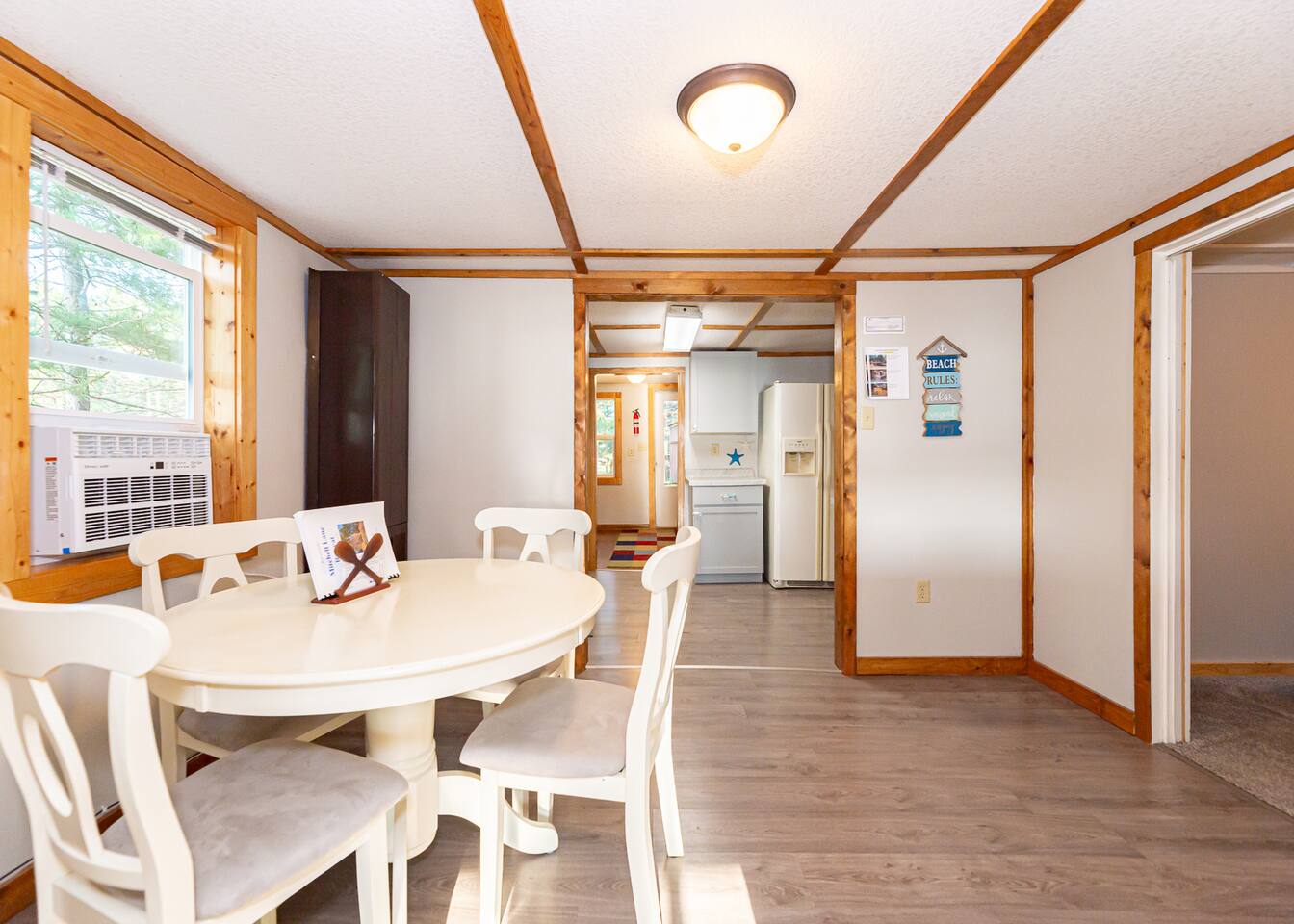Quaint cabin with updates everywhere you turn. Features a lakeside family room with several windows to view the lake. Kitchen and dining area are open to each other with bedrooms off the sides of each. Plenty of room to spread out.