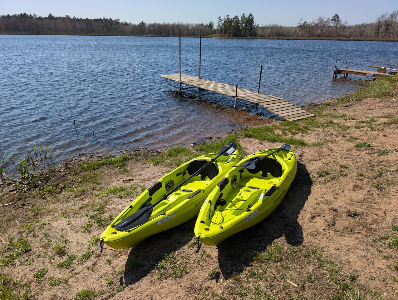 - We are on a well. Our water is softened and safe to drink but does have an iron taste. Please bring bottled water if any hesitation with well water. - The lake does not have a boat landing. Kayaks are available for rent. - Please respect that we have neighbors on both sides of the cabin. The property line on the north side is the tree line. We ask that you keep noise down after 10 pm to not disturb our neighbors.