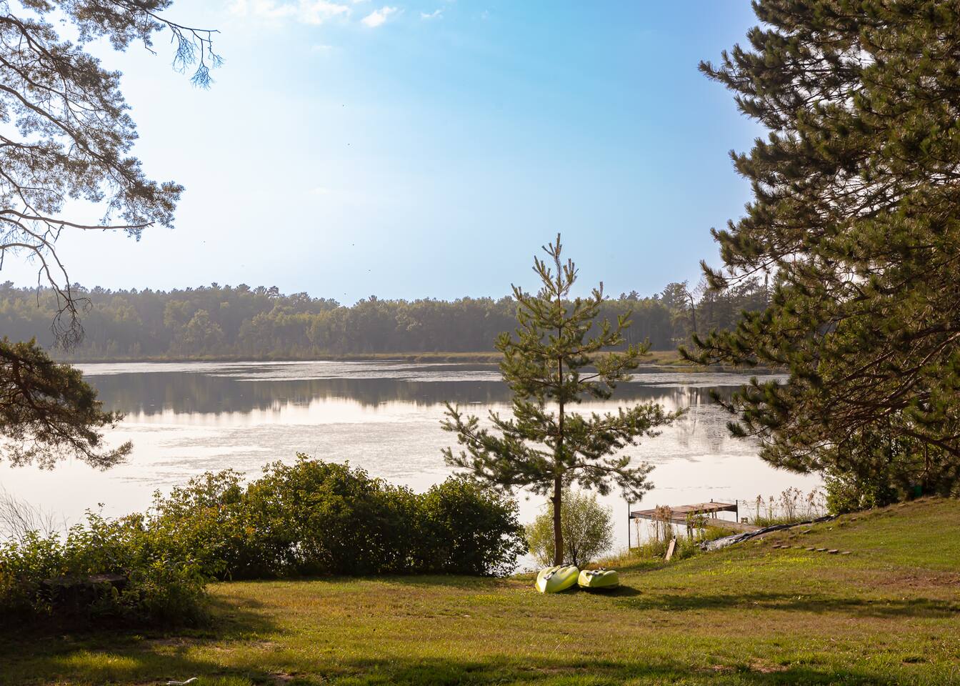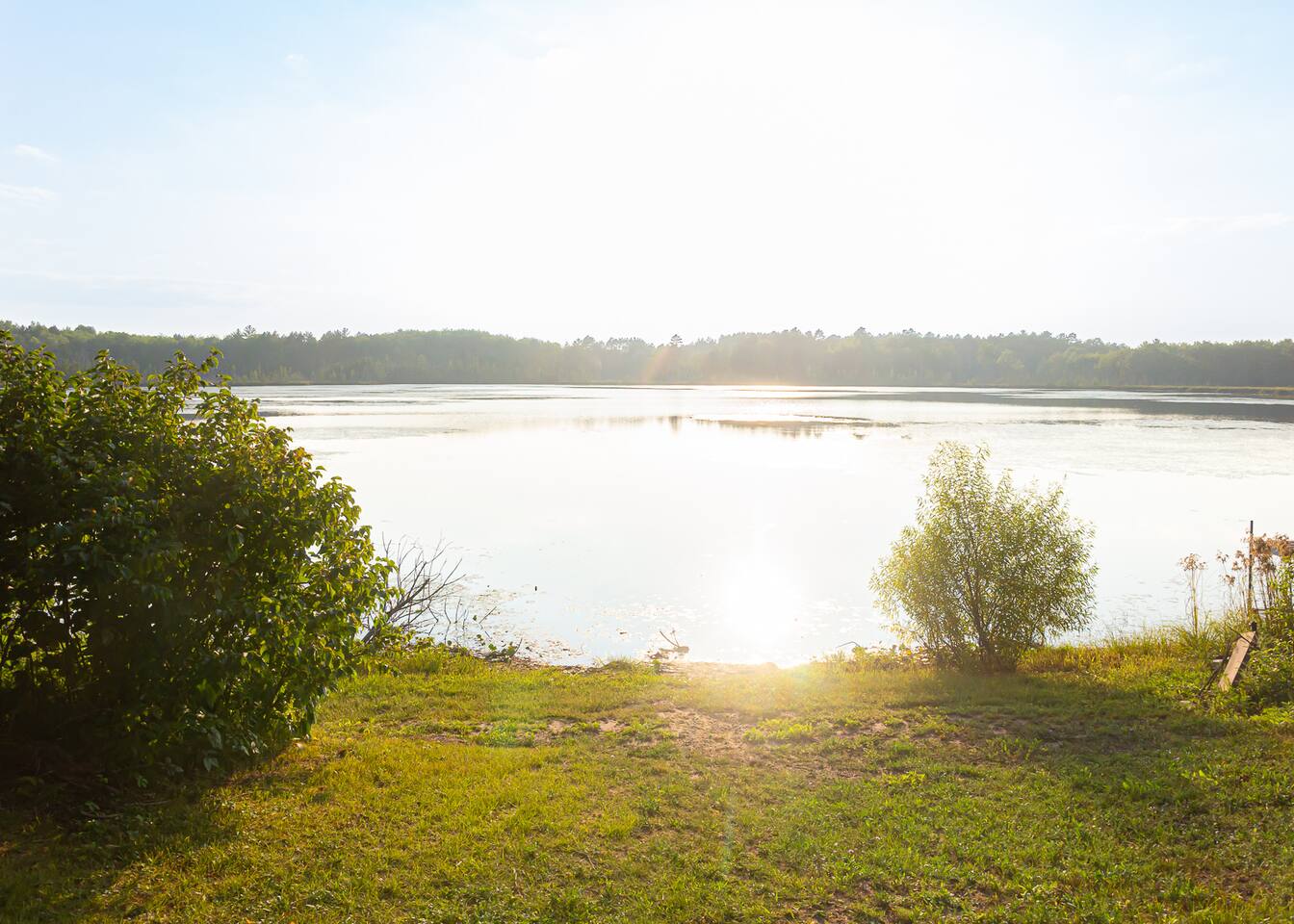 Set on a private lake with a few neighbors. Just minutes off the main highways close to towns and activities. The lake is swimable with sandy frontage and some weeds. We are 10 minutes from a public swimming beach.